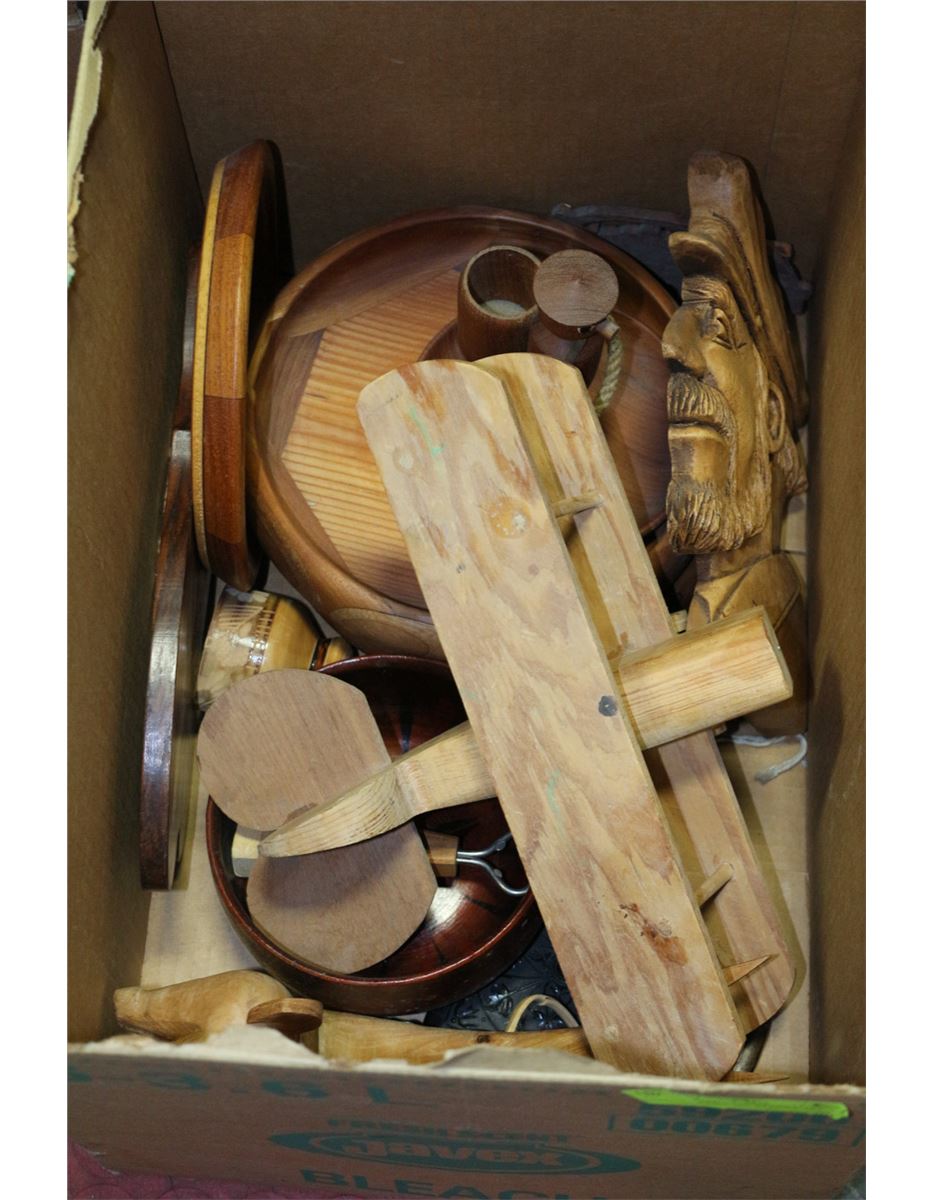 INCLUDING BOWLS, AIRPLANE, BOTTLE OPENER & WOODEN & BRASS LLAMA & INLAID WOODEN ART LAKE SCENE