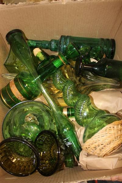 BOX OF ASST. GREEN GLASS ORNAMENTS