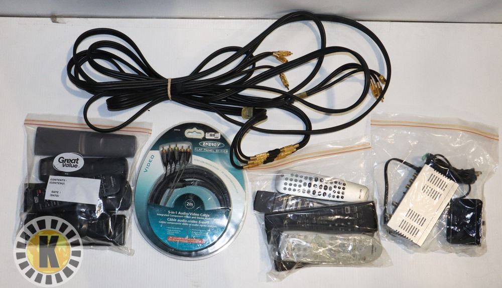 ESTATE. INCLUDES: 2M 5-IN-1 AUDIO VIDEO CABLE AUDIO VIDEO MODULATOR CATV/TV VCR SELECTOR SWITCH 12 REMOTE CONTROLS***ITEM(S) LOCATED IN LETHBRIDGE ALBERTA
