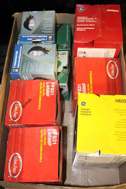 BOX OF AUTO LAMPS AND FUEL FILTERS