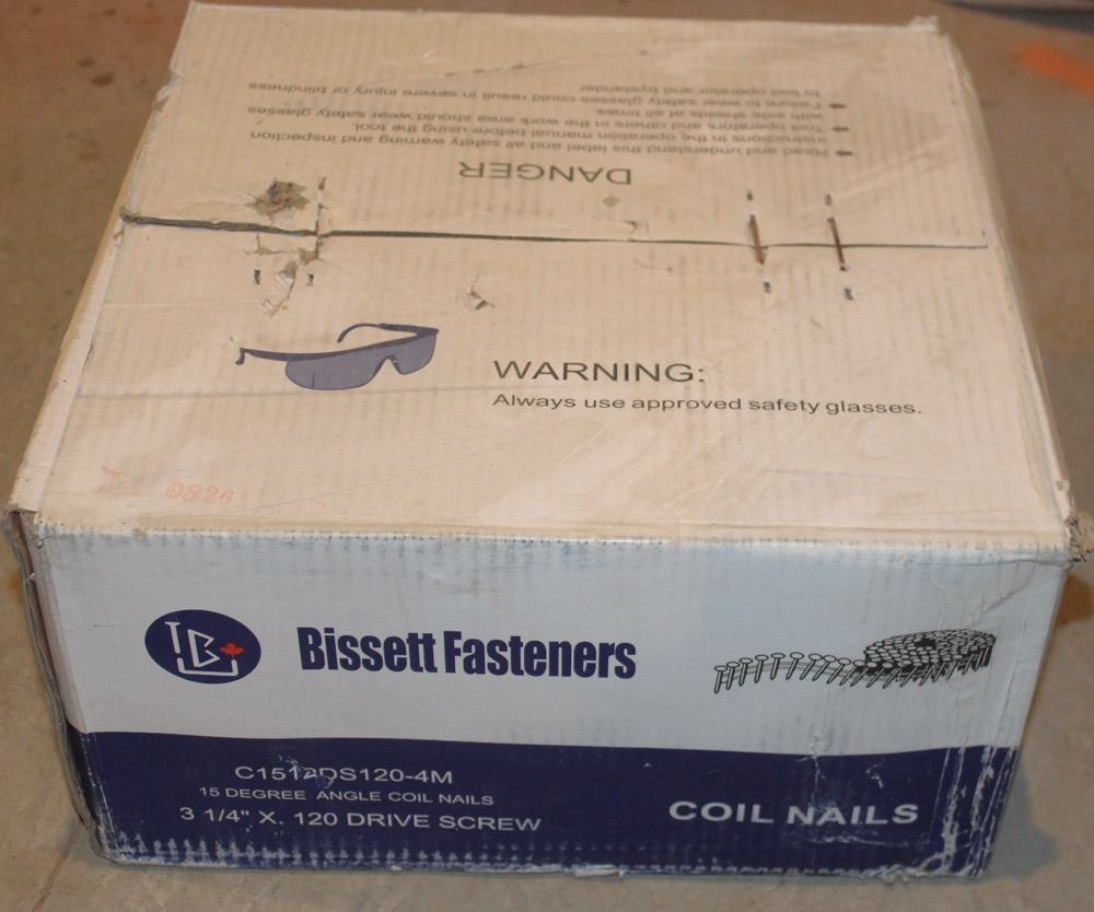 BOX OF BISSETT 15 DEGREE ANGLED COIL NAILS