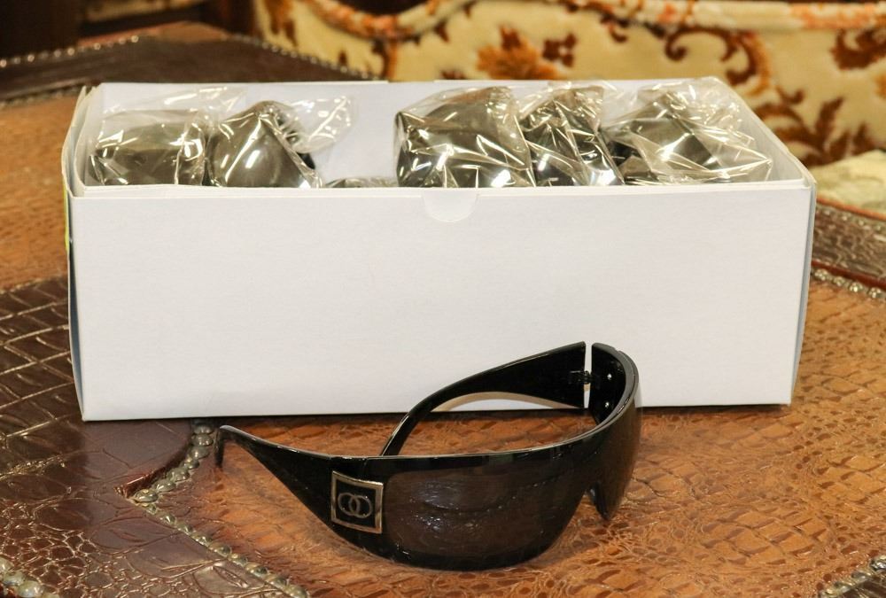 BOX OF BLACK CHANEL STYLE DESIGNER SUNGLASSES