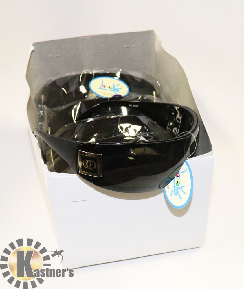 BOX OF BLACK CHANEL STYLED SUNGLASSES