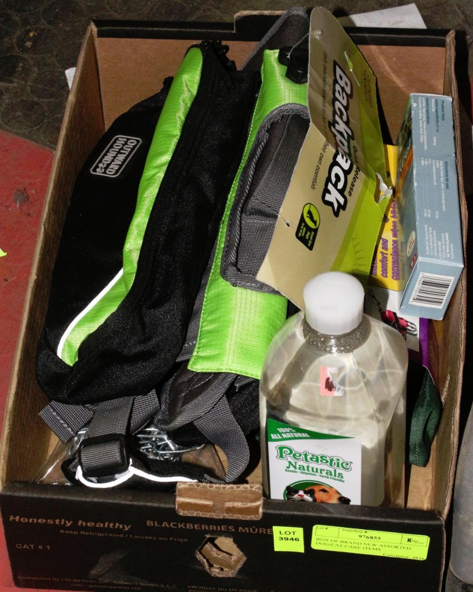 BOX OF BRAND NEW ASSORTED DOG/CAT CARE ITEMS