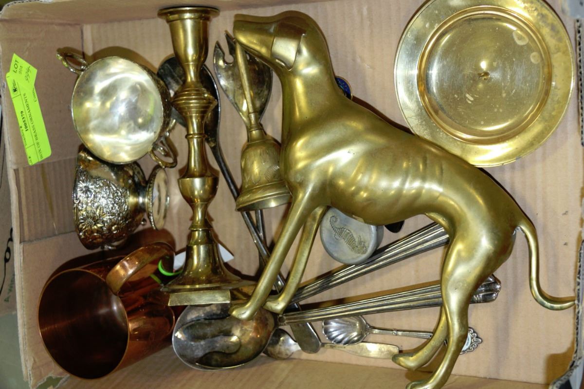 BOX OF BRASS ORNAMENTS
