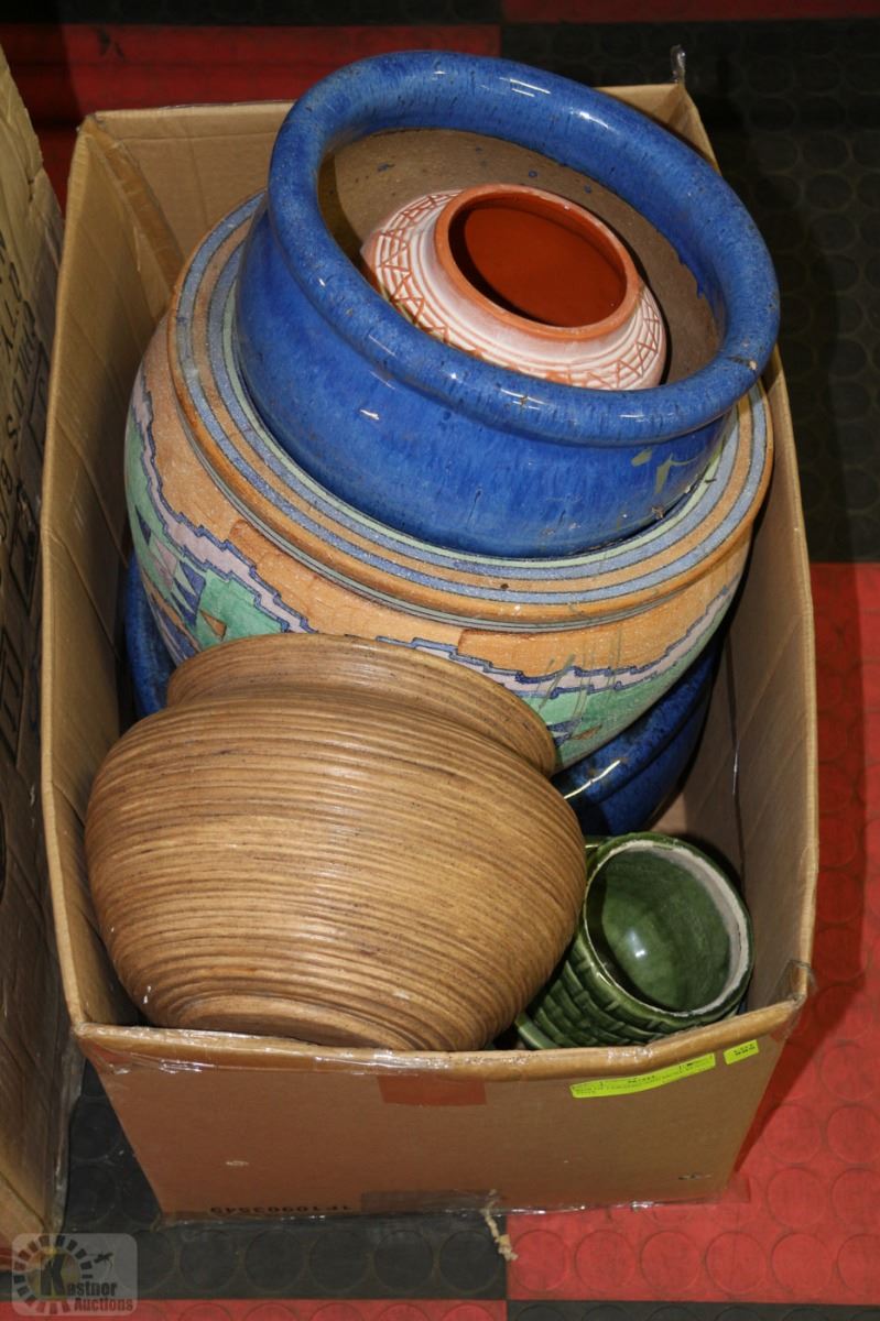 BOX OF CERAMIC AND MORE PLANT POTS