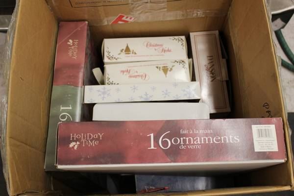 BOX OF CHRISTMAS ORNAMENTS