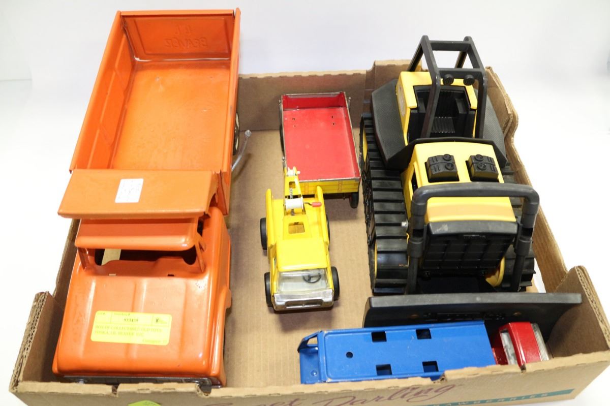 BOX OF COLLECTABLE OLD TOYS TONKA, LIL BEAVER ETC