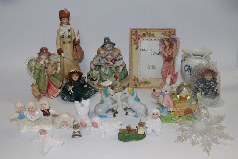 FRAME, SNOWGLOBE, AND AVON COLLECTIBLE FIGURES