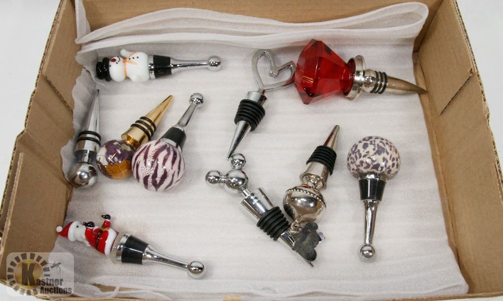 MICKEY MOUSE, LARGE GEM, GLOBE, ART GLASS SANTA AND SNOWMAN, AND MUCH MORE .. TOTAL OF 10 WINE STOPPERS