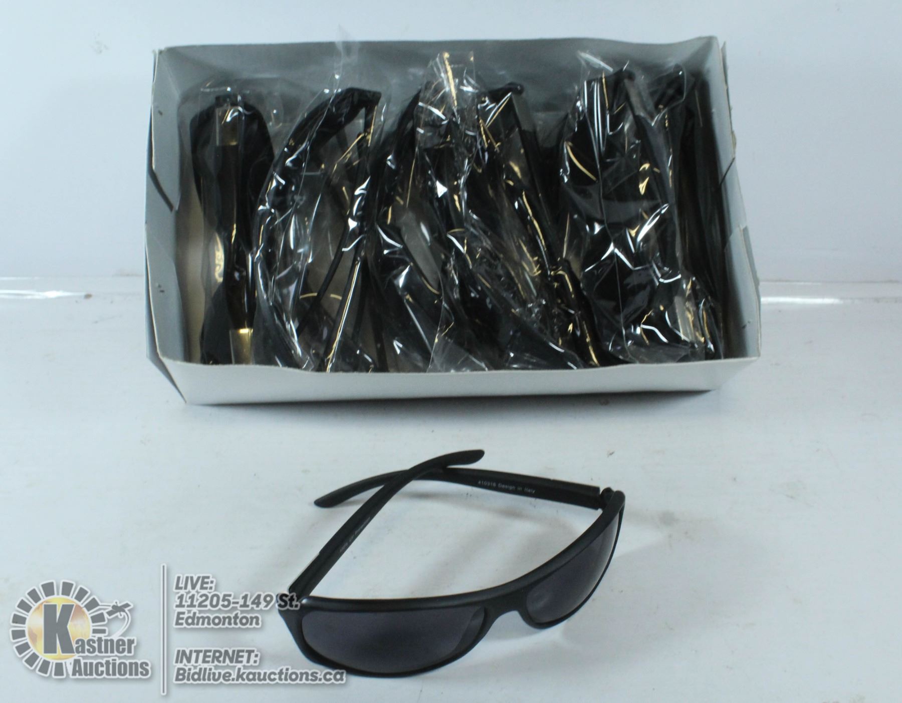 BOX OF DESIGNER STYLE BLACK MATTE SUNGLASSES.