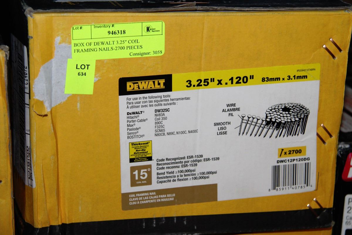 BOX OF DEWALT 3.25" COIL FRAMING NAILS-2700 PIECES