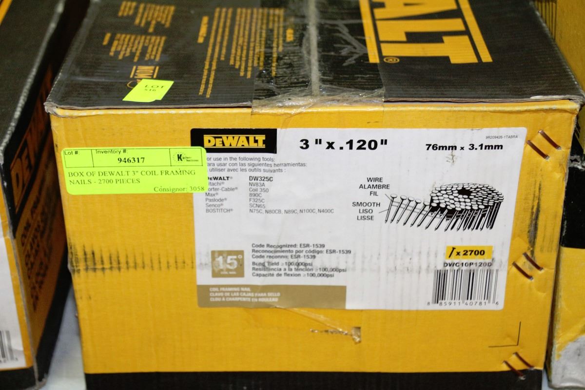 BOX OF DEWALT 3" COIL FRAMING NAILS - 2700 PIECES