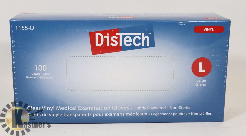 BOX OF DISTECH CLEAR VINYL MEDICAL EXAMINATION