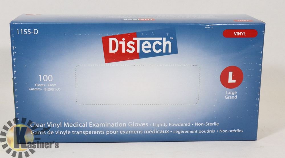BOX OF DISTECH CLEAR VINYL MEDICAL EXAMINATION