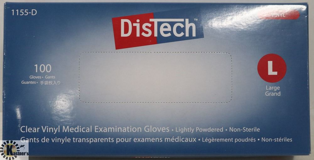 BOX OF DISTECH VINYL MEDICAL EXAMINATION GLOVES SZ