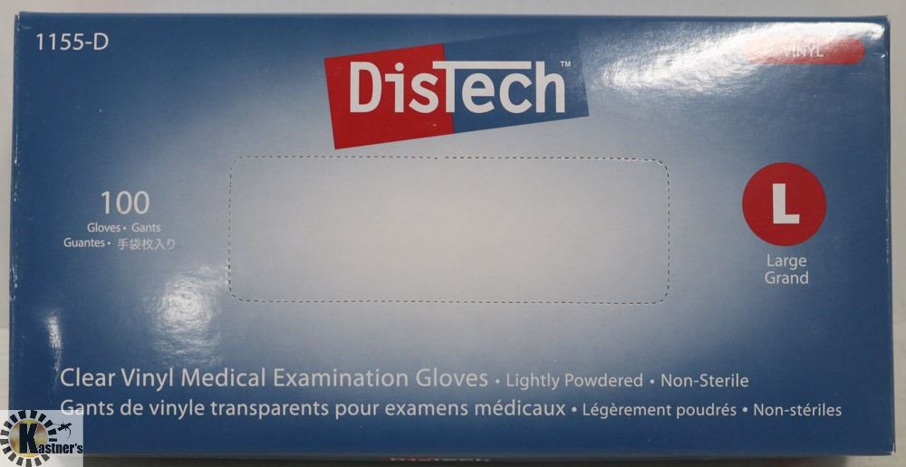 BOX OF DISTECH VINYL MEDICAL EXAMINATION GLOVES SZ