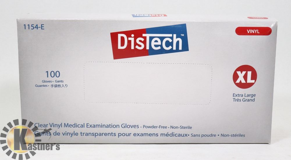 BOX OF DISTECH VINYL MEDICAL EXAMINATION GLOVES