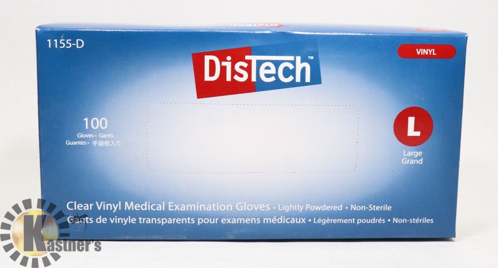 BOX OF DISTECH VINYL MEDICAL EXAMINATION GLOVES