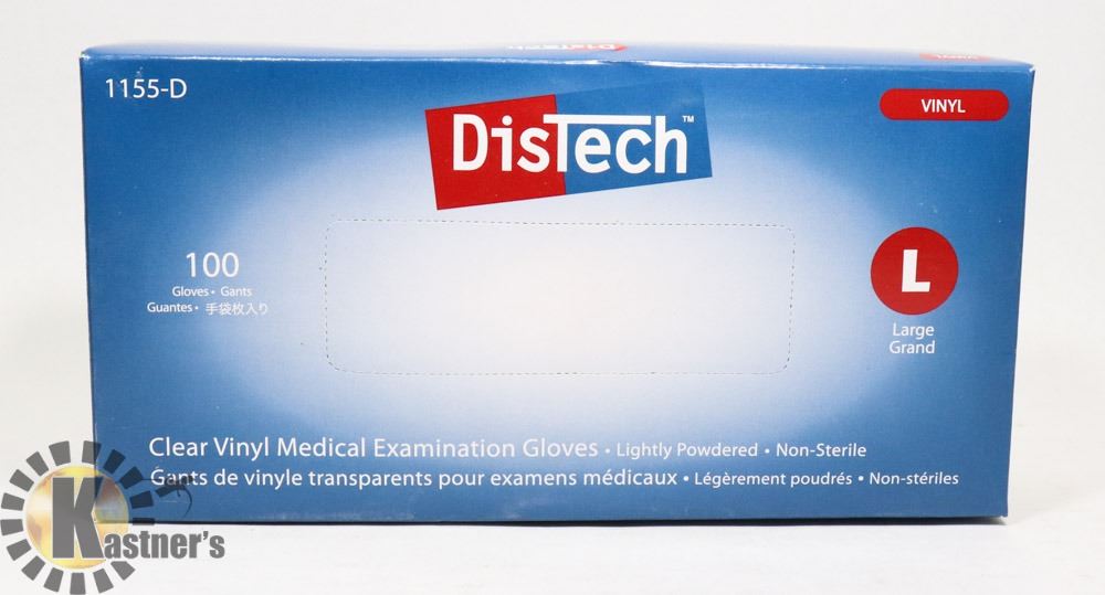 BOX OF DISTECH VINYL MEDICAL EXAMINATION GLOVES