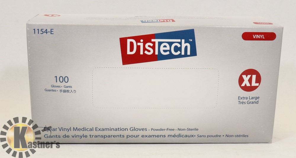 BOX OF DISTECH VINYL MEDICAL EXAMINATION GLOVES