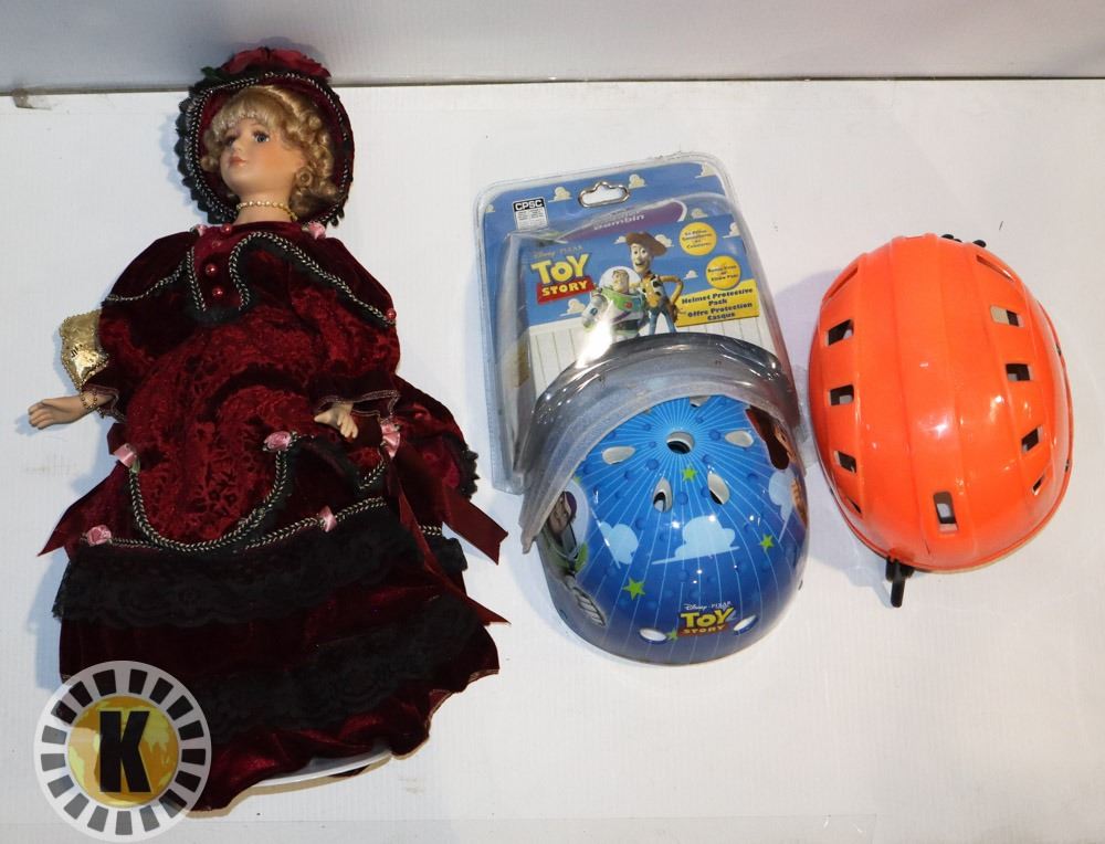 1 DOLL, 2 HELMETS, 1 PAIR OF KNEE PADS***ITEM(S) LOCATED IN LETHBRIDGE ALBERTA