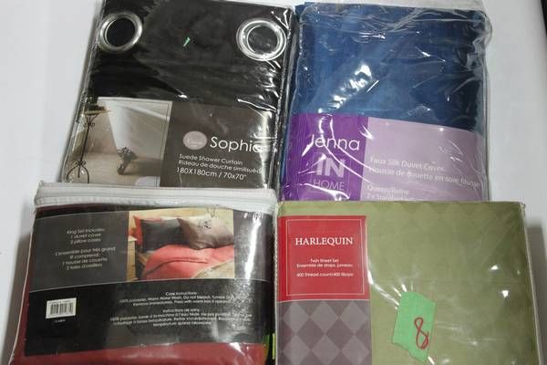 BOX OF DUVET COVERS AND CURTAINS