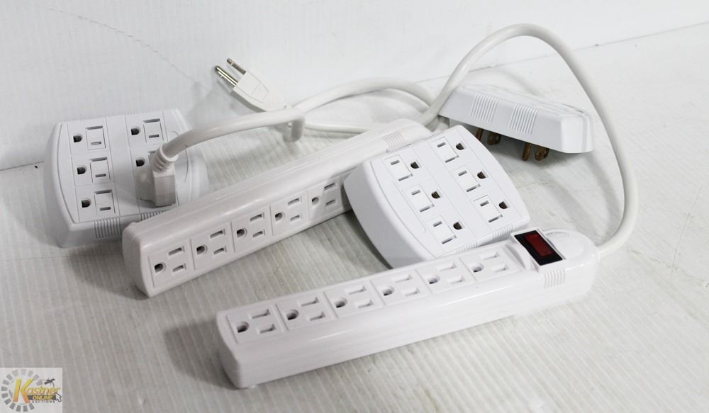 BOX OF ELECTRICAL PLUGS AND CORDS