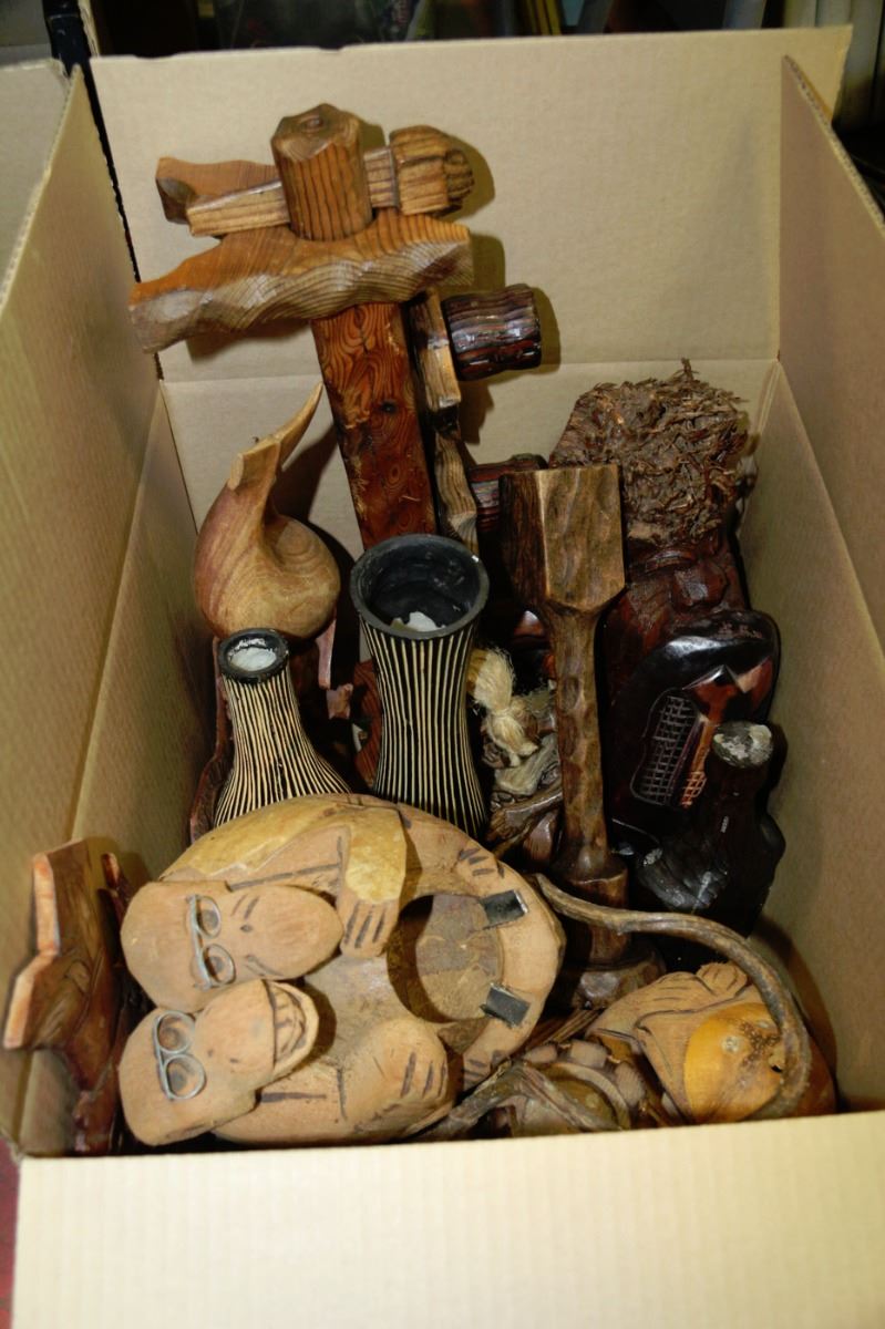 BOX OF ESTATE WOOD CARVED ORNAMENTS