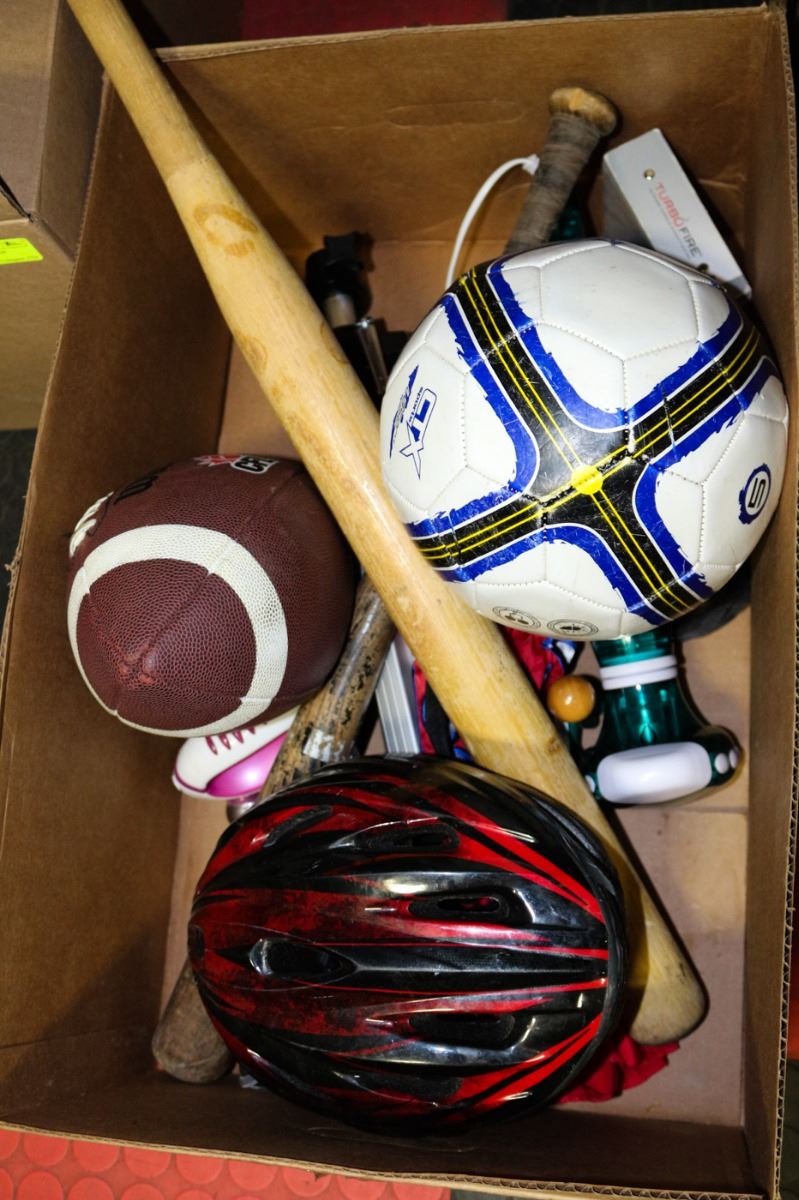 BOX OF EXERCISE & SPORTS EQUIPMENT
