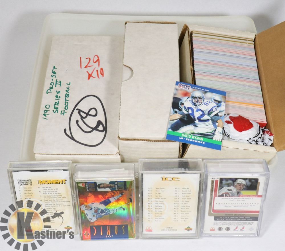 BOX OF FOOTBALL & HOCKEY CARDS.