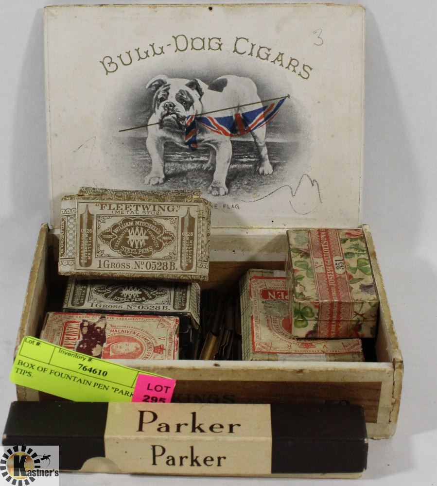 BOX OF FOUNTAIN PEN "PARKER" & TIPS.