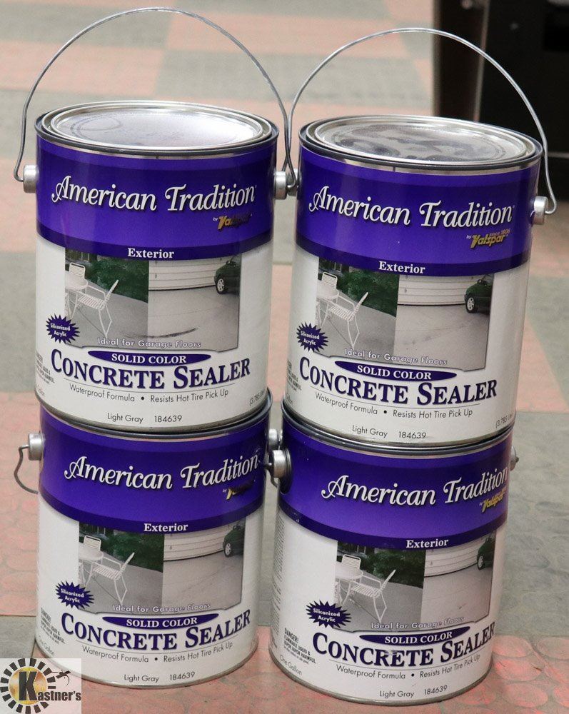 BOX OF FOUR 1 GAL CANS OF CONCRETE STAIN. GREY.