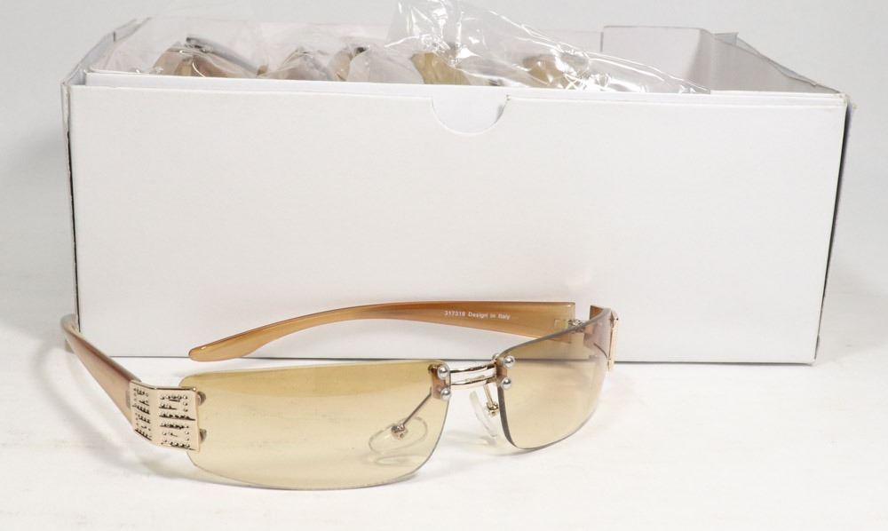 BOX OF GOLD TONED DESIGNER SUNGLASSES