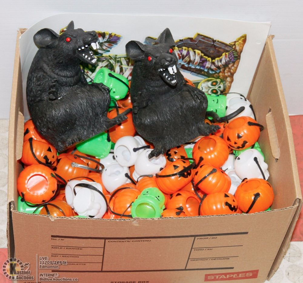 FRANKENSTEIN WINDOW BANNER, MUMMY WINDOW BANNER, OVER 100 TREATS BINS, 2 RAT DECORATIONS