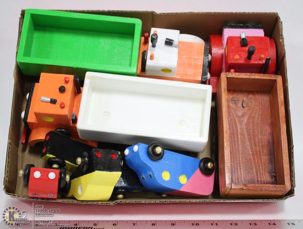 BOX OF HANDMADE WOOD CARS & SEMI TRUCKS