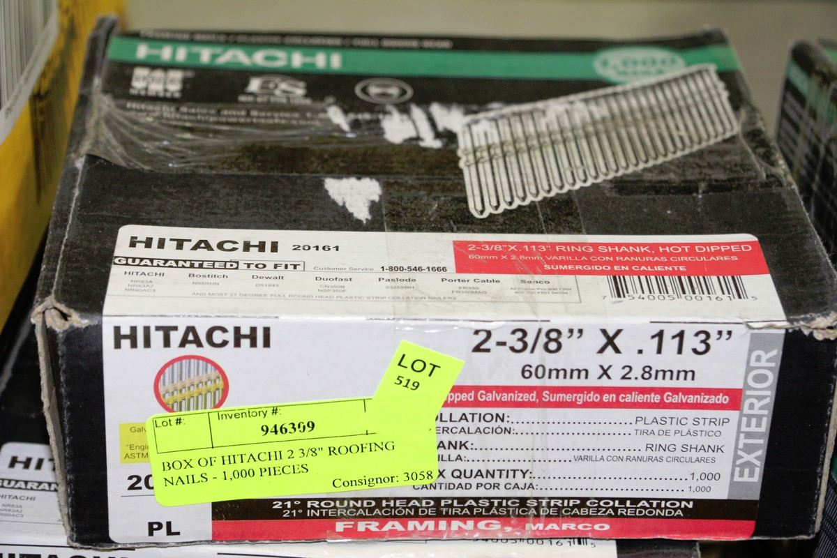 BOX OF HITACHI 2 3/8" ROOFING NAILS - 1,000 PIECES