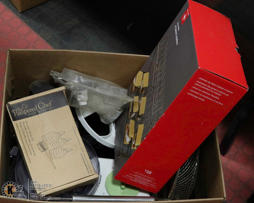 BOX OF KITCHEN ITEMS, INCUDES BLENDER, FOOD