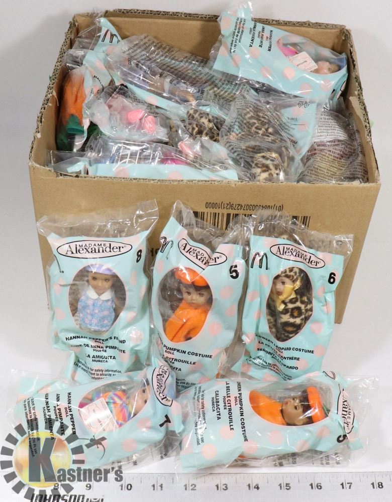 BOX OF MADAME ALEXANDER MCDONALDS TOYS.