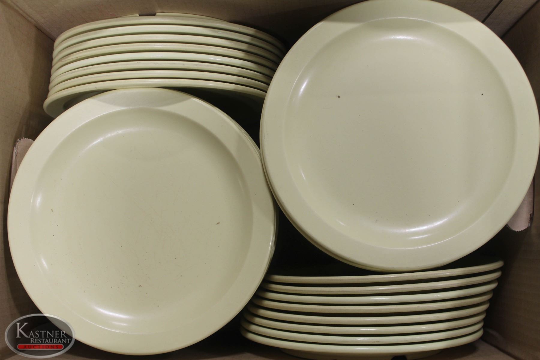 BOX OF MANY MELAMINE 10" DINNER PLATES
