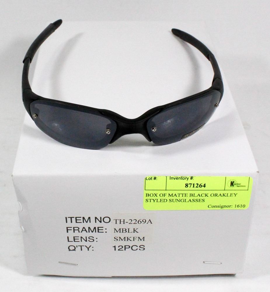 BOX OF MATTE BLACK OAKLEY STYLED SUNGLASSES