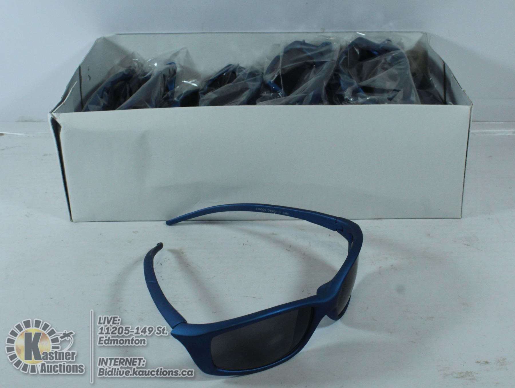 BOX OF MATTE BLUE NARROW FRAME SUNGLASSES DESIGNED