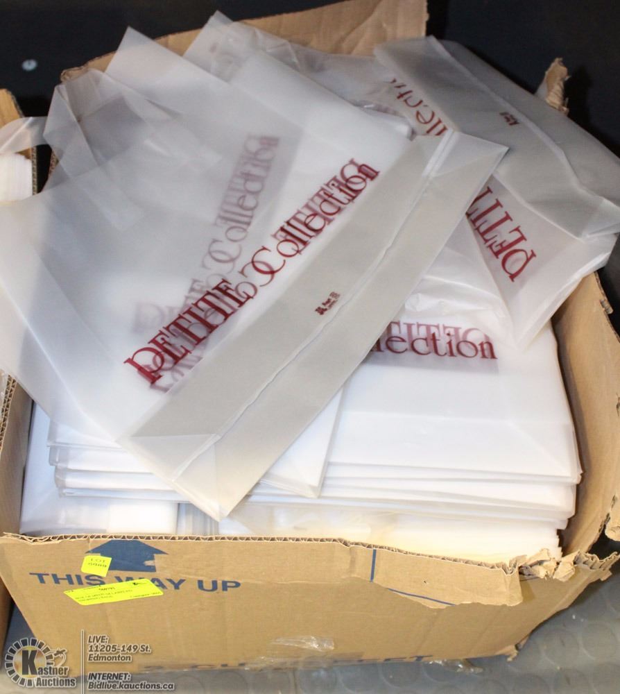 BOX OF MEDIUM LABELED SHOPPING BAGS
