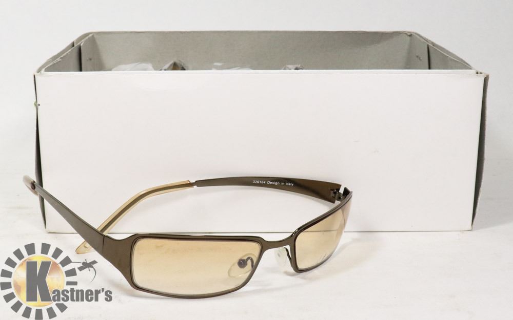 BOX OF METALLIC BROWN DESIGNER SUNGLASSES