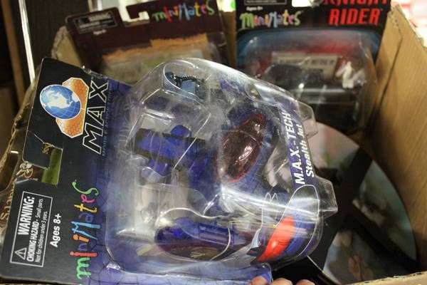 BOX OF MINIMATES AND DECORATIVE KITTEN PLATES