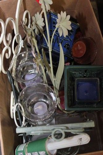 BOX OF MISC. (PARTY LIGHTS, CANDLE HOLDERS, ETC.)