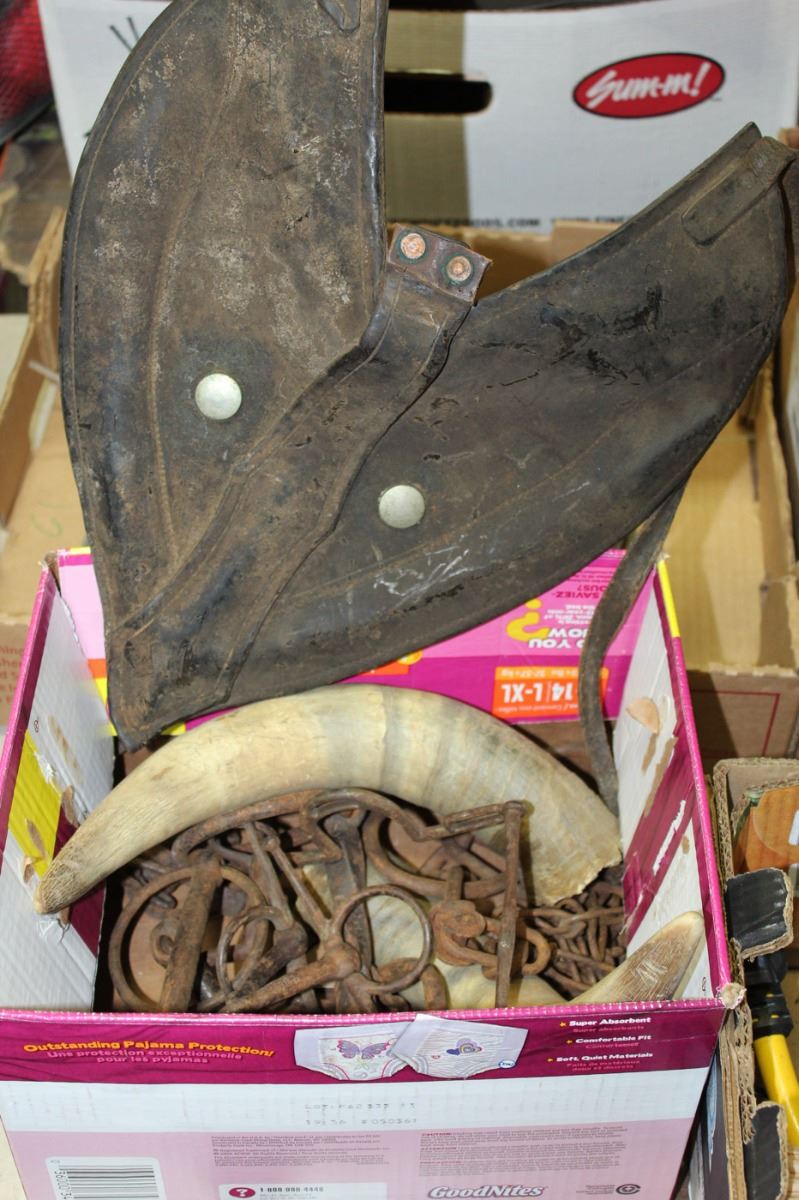 BOX OF MISC VINTAGE HORSE ACCESSORIES