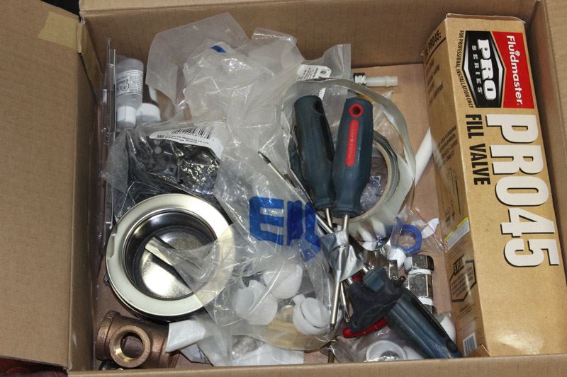 BOX OF MISCELLANEOUS PLUMBING SUPPLIES