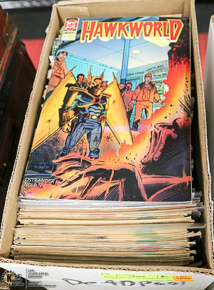BOX OF MOSTLY DC HAWKWORLD COMICS