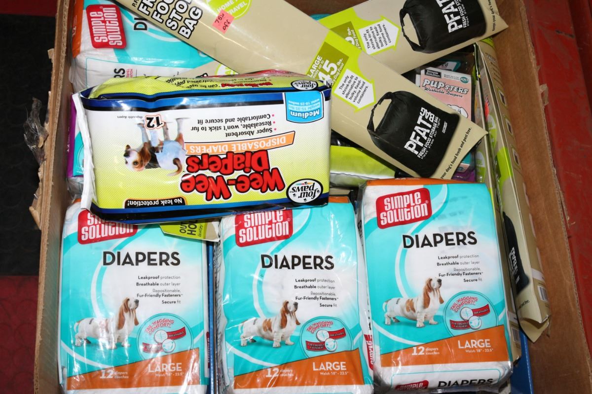 BOX OF NEW DOG DIAPERS